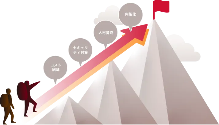 シェルパとは、登山者が山の頂上にたどりつくための手助けをする案内人を意味する登山用語です。クラウドの導入や有効活用に伴うさまざまな課題を、豊富な知識と経験をもとにひとつひとつ解決へと導きながら、目的となる山頂まで伴走支援を行います。