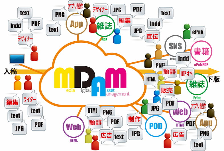 松下氏「雑誌制作に関わる役柄としてはやはり編集部が思い浮かびますが、他にも広告部や宣伝部、販売部といった営業管理系の部署が、販促や広告で活用するために誌面のデータをリクエストする場合があります。さらに、WebメディアやSNS配信、ECサイトなどでデータを使用するケースも増えてきました。データが必要となったとき、担当者はその都度編集部や印刷所に問い合わせをして、どの号の何ページのデータが欲しいと依頼をしなければなりませんでした。そうした個別の依頼に一つひとつ対応しなければいけないとなると、印刷会社の現場も大変です。コンテンツのマルチユースが進むなか、アクセス権限に応じてデータにアクセスし、取得できるという理想的な環境を目指し、MDAMの企画検討をスタートしました」