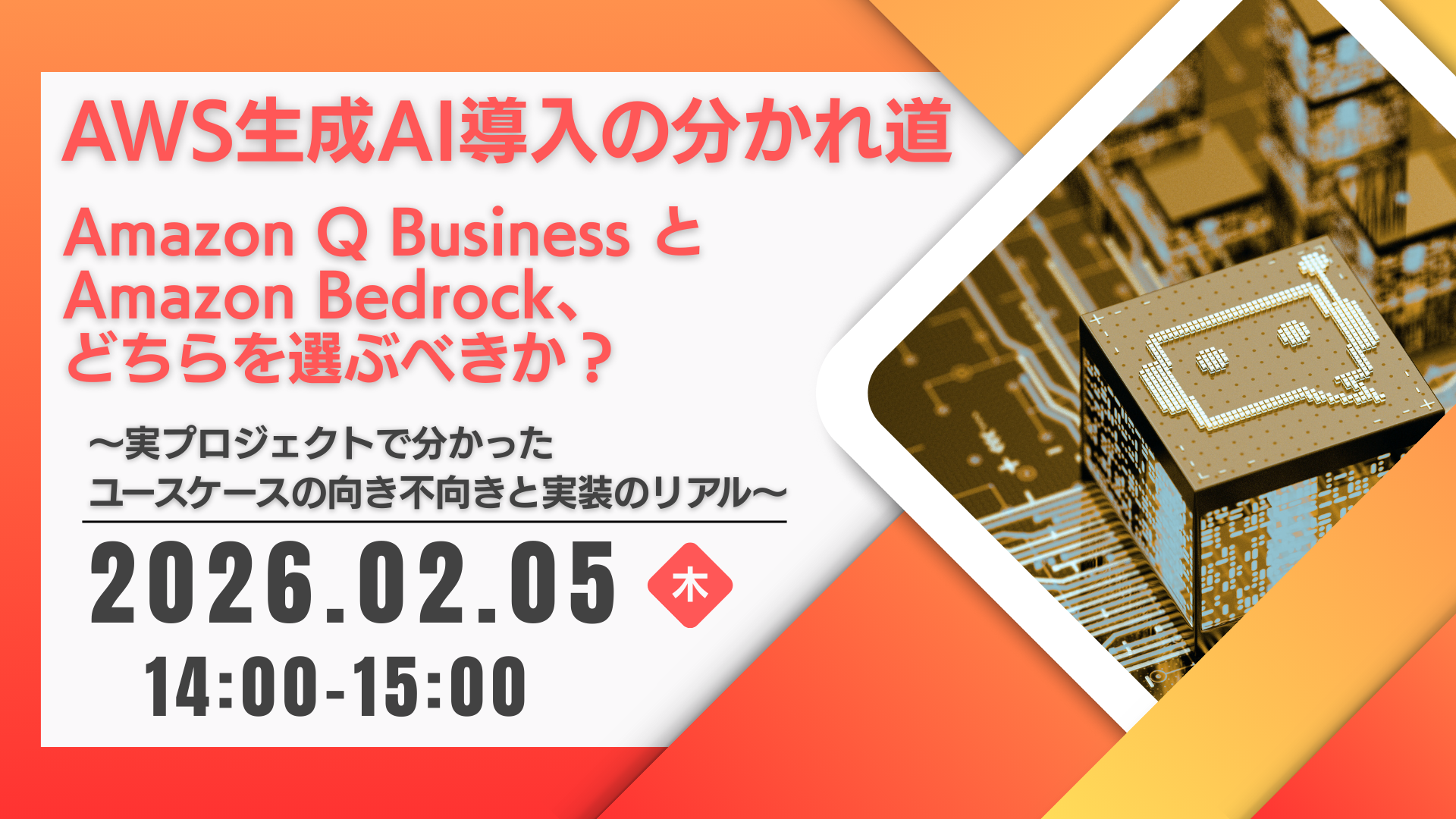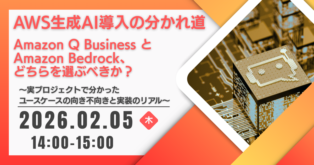 【2026/2/5】『AWS生成AI導入の分かれ道。Amazon Q Business と Amazon Bedrock、どちらを選ぶべきか? ~実プロジェクトで分かったユースケースの向き不向きと実装のリアル~』ウェビナーを開催します