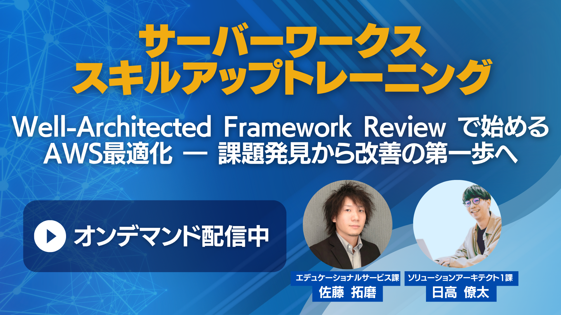 「サーバーワークススキルアップトレーニング Well-Architected Framework Review で始めるAWS最適化 ― 課題発見から改善の第一歩へ」オンデマンドセミナー公開中