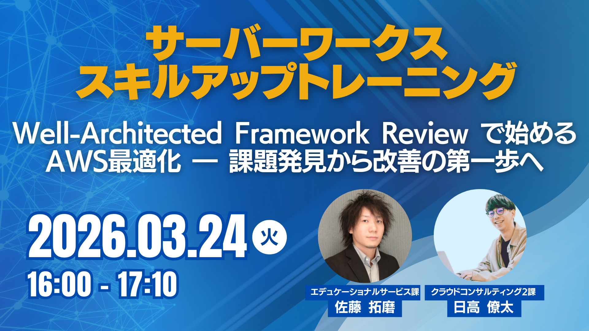 【2026/3/24】「サーバーワークススキルアップトレーニング Well-Architected Framework Review で始めるAWS最適化 ― 課題発見から改善の第一歩へ」のご案内