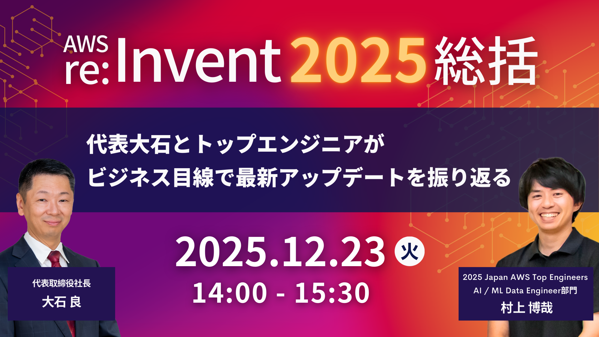 【12/23】「【AWS re:Invent 2025 総括】代表大石とトップエンジニアがビジネス目線で最新アップデートを振り返る」ウェビナーを開催します